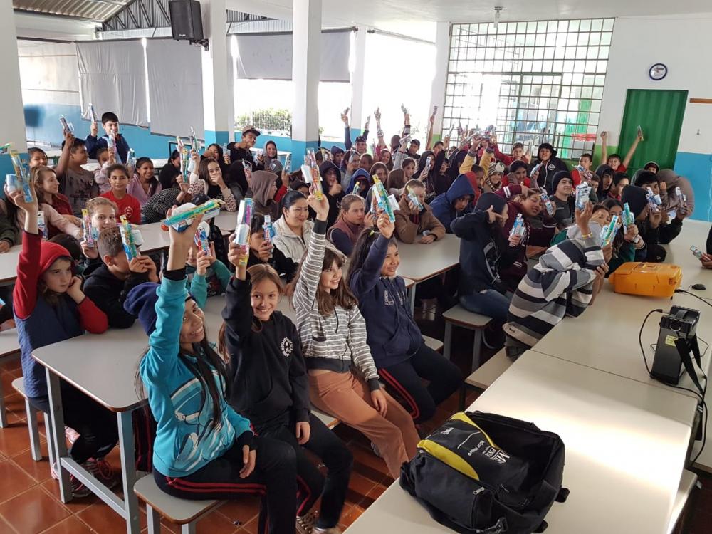 Na manhã desta quinta-feira, dia 17, o Rotary Clube Chopinzinho Iguaçu fez a entrega de 120 kits de higiene bucal para alunos do núcleo de educação de Santa Inês. Durante a entrega dos materiais, o presidente do Rotary, Daniel Zanesco, falou sobre a importância da iniciativa. “É com muita alegria que estamos desenvolvendo mais uma ação em prol da comunidade chopinzinhense em parceria com a escola do núcleo de Santa Inês e com a prefeitura municipal de Chopinzinho através da Secretaria de Saúde. Fizemos a entrega de 120 kits para alunos da 6ª, 7ª e 8ª séries com o objetivo de melhorar a saúde bucal destas crianças, onde cada kit é composto por uma escova, um tubo de pasta de dente e fio dental. Mais uma vez, o Rotary Clube que é uma entidade sem fins lucrativos está proporcionando essa melhoria de qualidade de vida para as crianças que foram atendidas”, disse Zanesco.