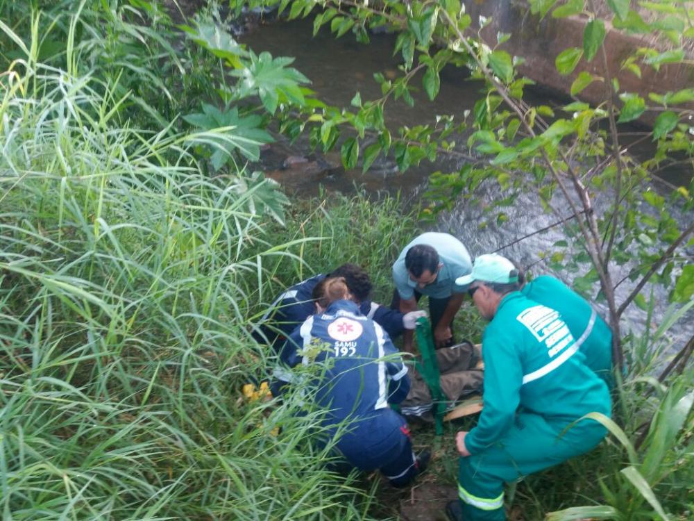 Segundo a pessoa que socorreu a vítima, ao ouvir os gritos foi verificar e encontrou um homem que havia caído no barranco no final da rua e estava ao lado do rio e não conseguia se levantar.