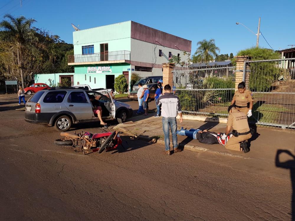 Na manhã desta terça feira, por volta das 07:30, o SAMU e a Polícia Militar de Chopinzinho atenderam um acidente do tipo colisão entre moto e veículo na Avenida Getúlio Vargas, esquina com a Rua Paulo Conte.
