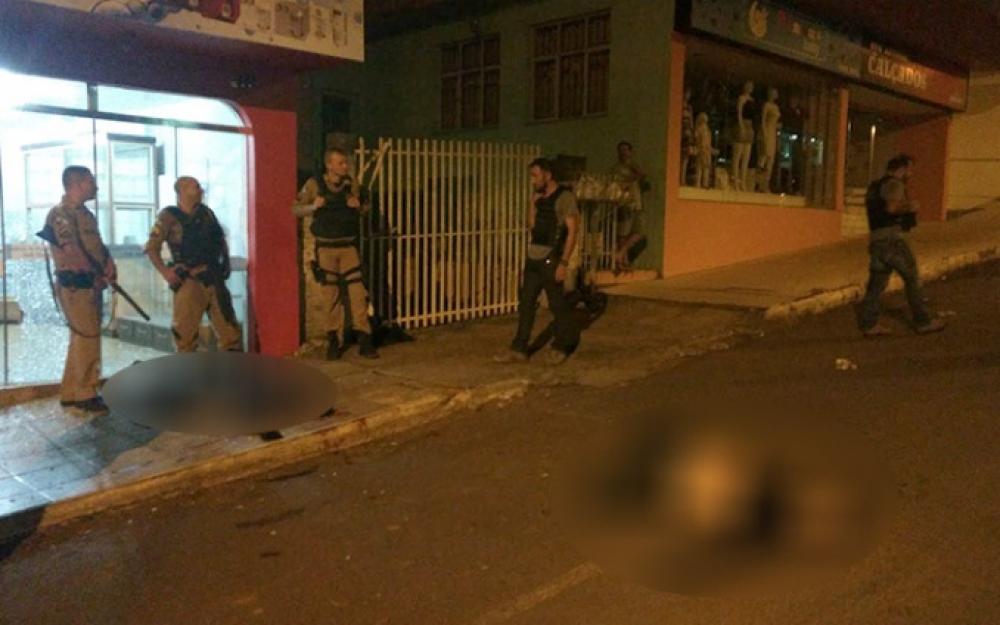 De acordo com testemunhas, um grupo metralhou o destacamento da PM enquanto outra parte da quadrilha atirou contra a sede da Polícia Civil. Simultaneamente, outro grupo invadia as agências bancárias para instalar os explosivos e concluir o roubo. No entanto, os policiais militares reagiram à ação criminosa e trocaram tiros com os ladrões, que estavam armados com pistolas e fuzis. Foi neste tiroteio que dois suspeitos morreram e outros três conseguiram fugir. Também houve troca de tiros em frente à delegacia, mas ninguém ficou ferido.
