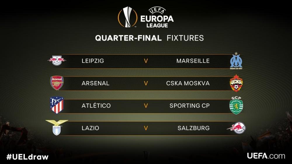 Depois de definir os confrontos da Liga dos Campeões, a Uefa sorteou os confrontos das quartas de final da Liga Europa. Apesar da expectativa para um possível duelo entre Arsenal e Atlético de Madrid, as bolinhas colocaram o CSKA Moscou no caminho dos ingleses e o Sporting, de Portugal, como adversário da equipe comandada por Diego Simeone.