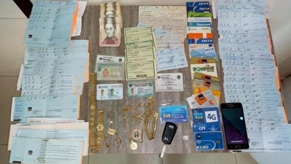 Após a abordagem, os policiais constataram que os cheques emitidos por eles eram de uma conta encerrada. Com eles foram encontrados mais de 50 cheques em nome de familiares e de terceiros, e ainda mais de vinte cartões de crédito, além de joias e outros objetos adquiridos através de golpes.
