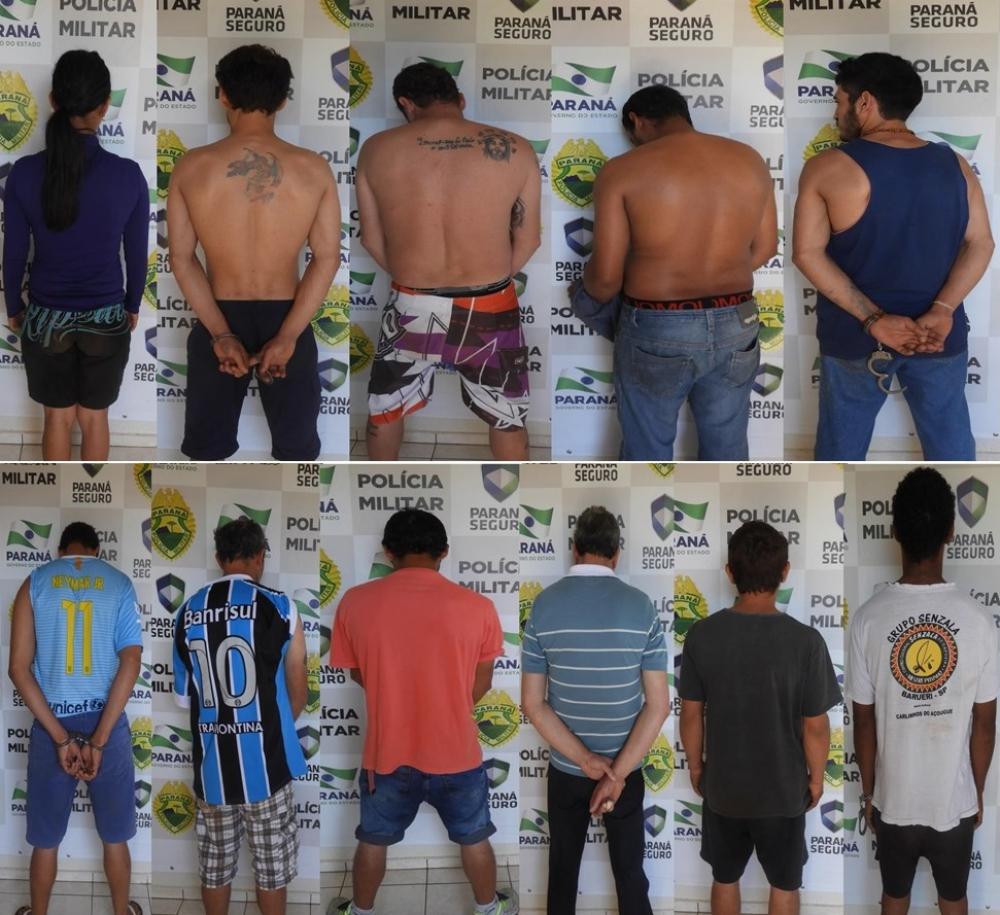 Ao todo 11 pessoas foram presas e foi apreendido um revólver, uma espingarda de ar comprimido, além de uma quantidade considerável de drogas.