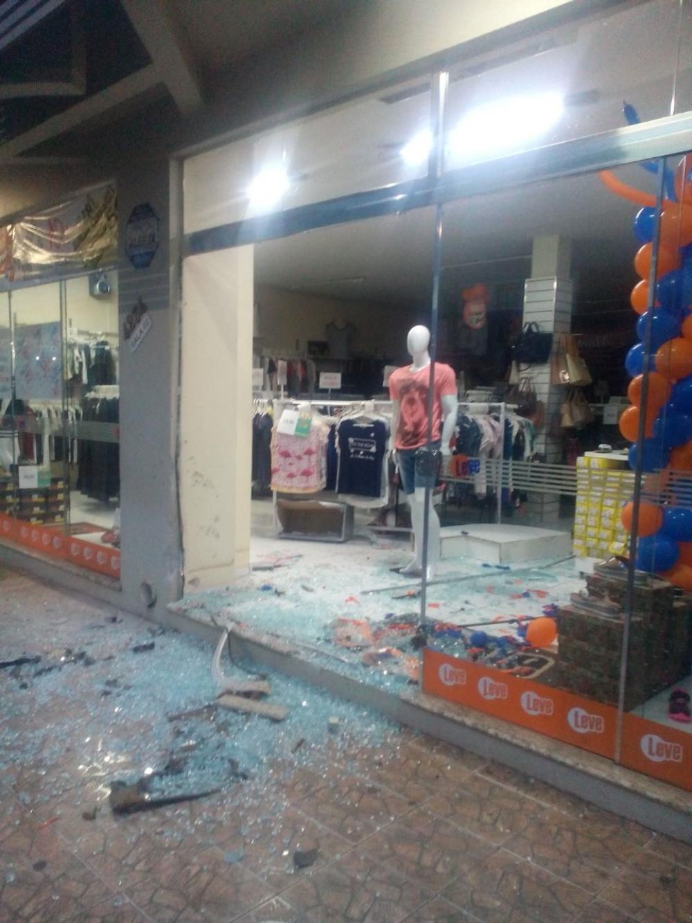 O veículo teve danos de grande monta e a loja teve danos na porta de vidro que ficou destruída. Ninguém ficou ferido no acidente.