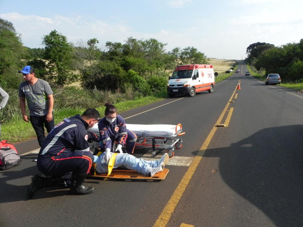 A equipe do SAMU encaminhou o motociclista para o hospital em Chopinzinho.