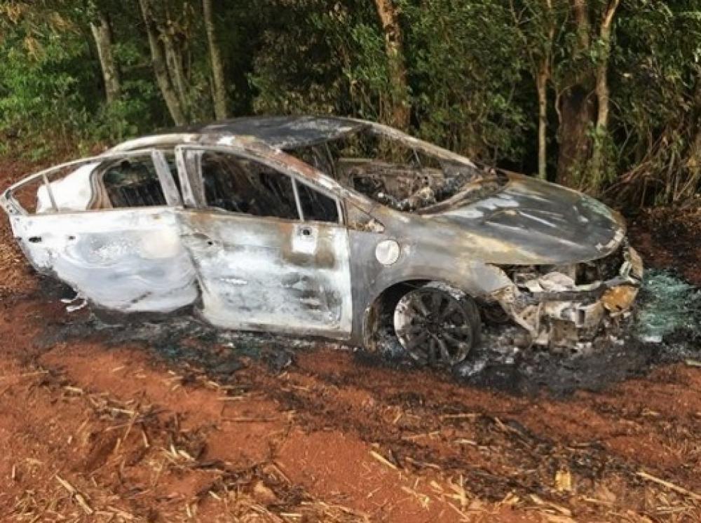 O carro foi encontrado queimado e um corpo carbonizado no banco de trás. Os documentos e a bolsa da vítima foram jogados próximo do carro.