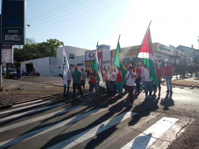 A concentração foi em frente ao Banco do Brasil, no centro da cidade, de onde as cerca de 40 instituições que participaram entre escolas com alunos e professores, entidades e a comunidade em geral, partiram em caminhada até o Centro Esportivo Municipal Dionisto Debona. Neste ano a caminhada teve um diferencial, onde a partir do Supermercado Cenci até o Centro Esportivo Municipal, uma fanfarra formada por alunos do núcleo de Santa Inês puxaram a fila, abrilhantando ainda mais o desfile.