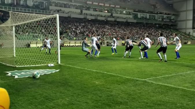 Após pressionar bastante, o time mineiro chegou ao primeiro gol aos 28 minutos da primeira etapa, com Elias, que acertou um belo chute no anglo para abrir a contagem. Confuso em campo, reflexo da confusão nos bastidores e da saída de Lisca, o Tricolor da Vila não conseguiu reagir.