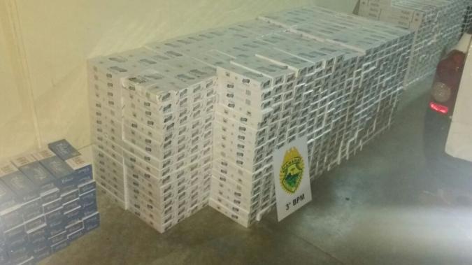 Diante do fato, a equipe guinchou o veículo GM/Montana até o Pátio do 2º Pelotão de Policia Militar de Chopinzinho, onde durante a contagem foi contabilizada a carga: (1.048) mil e quarenta e oito maços de cigarro marca FOX, (48) quarenta e oito maços de cigarro marca CLASSIC, (398) trezentos e noventa e oito maços de cigarro marca Palermo, (49) quarenta e nove maços de cigarro marca MIL, (150) cento e cinquenta maços de cigarro marca GIET, totalizando (1.693) mil seiscentos e noventa e três maços de cigarros oriundos do país vizinho Paraguai. Em seguida a equipe entrou em c ontato com a Policia Federal de Guarapuava, onde conversaram com o Delegado de Plantão, o qual após tomar conhecimento dos fatos, por não haver fortes indícios do envolvimento dos jovens relacionados com o contrabando, a equipe foi orientada a realizar a apreensão do veículo GM/Montana juntamente com a referida carga e encaminhar carga para aquele órgão, identificando os suspeitos para a instauração de inquérito.