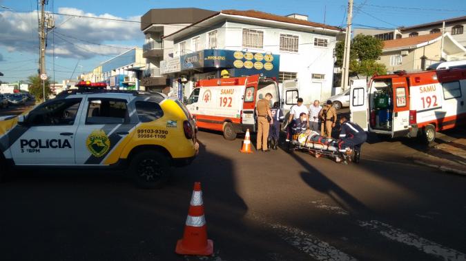 Por volta das 16h50min desta quarta feira, dia 16, a Polícia Militar de Chopinzinho e o SAMU, foram acionados para atender um acidente de trânsito na esquina da Avenida XV de Novembro com a Rua 07 de Setembro, no centro de Chopinzinho.