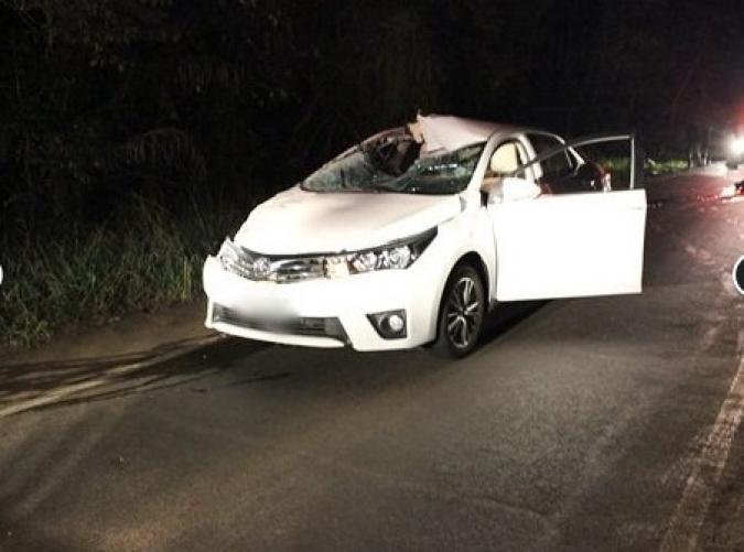 O veículo Toyota/Corolla placas de Marmeleiro seguia sentido a cidade de Francisco Beltrão e os animais que haviam fugido de uma propriedade nas proximidades estavam sobre a pista quando foram atingidas pelo veículo.