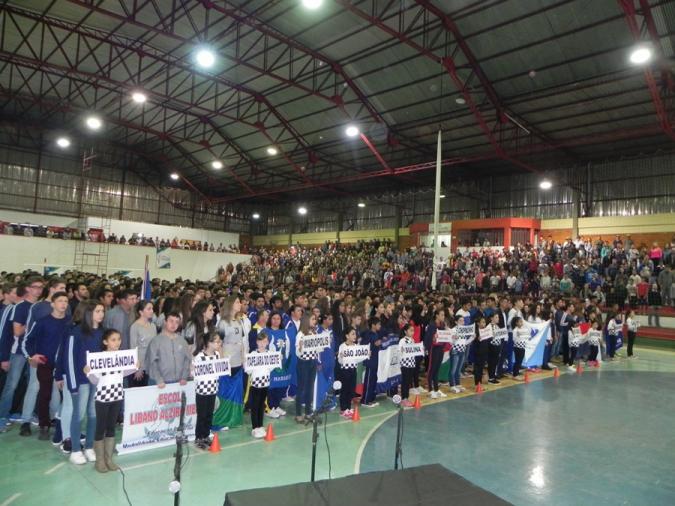 O público chopinzinhense lotou as dependências no Centro Esportivo Municipal Dionisto Debona na noite desta sexta feira, dia 23, para prestigiar a abertura da 64ª edição da fase regional dos Jogos Escolares do Paraná.