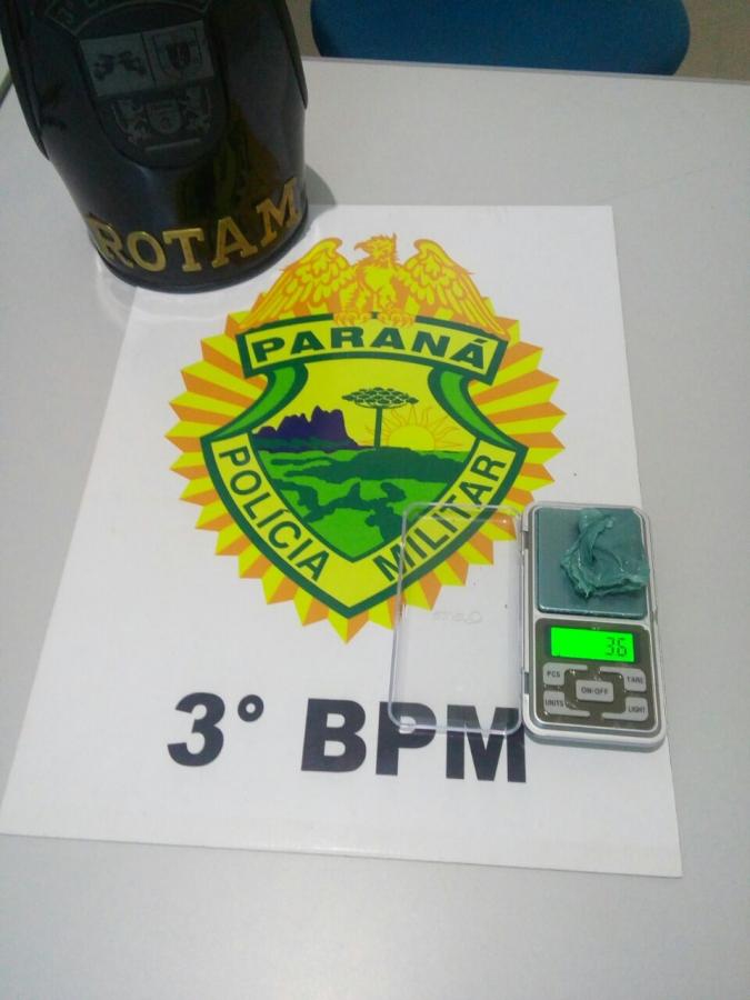 Na tarde desta quarta feira, dia 21, a equipe da ROTAM da 3ª Cia, em patrulhamento pelo Bairro São Sebastião, município de Chopinzinho, PR, realizou abordagem a dois adolescentes (13 e 14 anos) os quais após passarem por busca pessoal, foi localizado ao lado de um muro onde os dois estavam, um invólucro de substância análoga a "maconha" pesando aproximadamente 3,6 gramas.