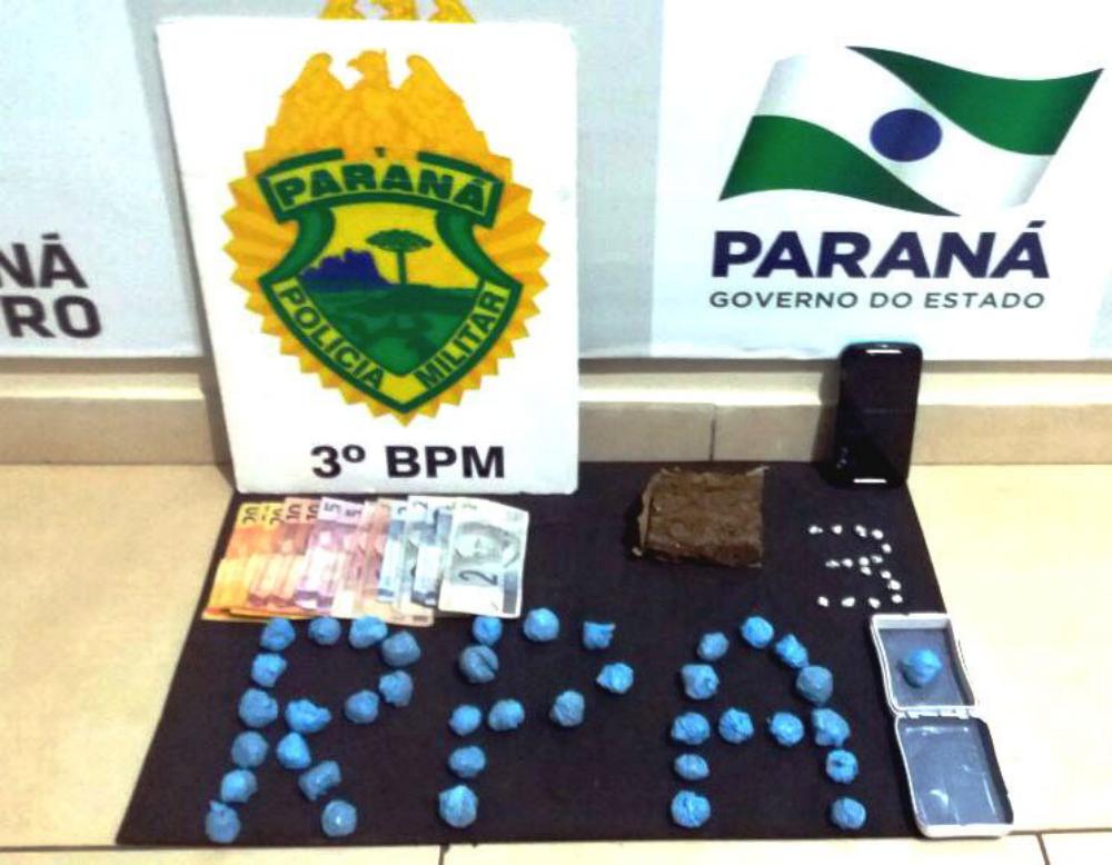 A abordagem aconteceu por volta das 00h30min, em frente a uma residência na Rua Travessa Itu, bairro Morumbi, Pato Branco, sendo localizada com o de 17 anos uma bucha de maconha, um celular e R$30,00 em espécie, e com o de 15 anos R$80,00 em espécie. Na residência foi apreendido um taco de maconha pesando aproximadamente 108 gramas, 38 buchas de maconha e 16 pedras de crack localizadas embaixo de um colchão.