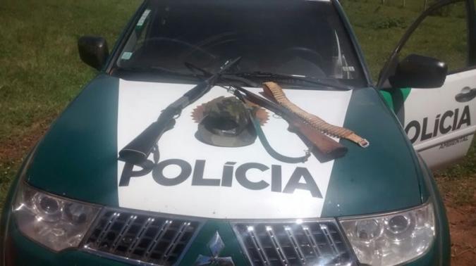 Policiais acompanhavam fiscais do IAP (instituto Ambiental do Paraná) e desconfiaram da atitude dos detidos. Foi feita abordagem e encontradas no local duas espingardas calibre 36, além de 7 cartuchos intactos e outros 18 deflagrados.