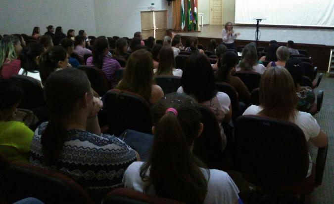 Desde o dia 06, segunda-feira, até o final desta semana, os professores da rede municipal de ensino estão participando da Semana Pedagógica. Os dois primeiros dias aconteceram na Escola Municipal de Excelência. Hoje, todos se reuniram no Anfiteatro David Rogos Schmitz para participar de palestra sobre o Marco Legal da Primeira Infância, com Jovelina Chaves.