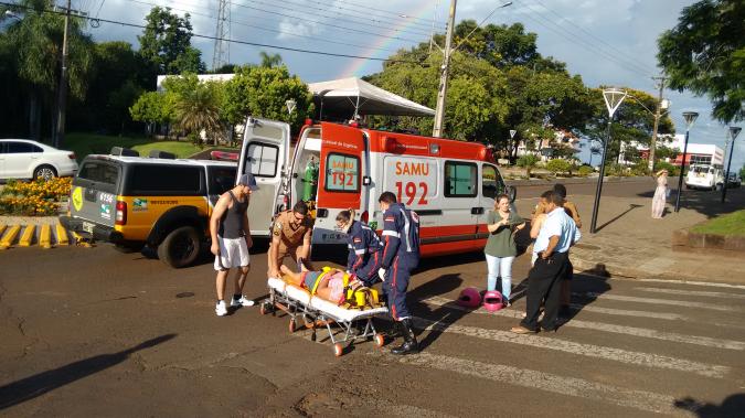 Por volta das 18h45min desta segunda feira, dia 23, a Polícia Militar e o SAMU de Chopinzinho foram acionados para atender um acidente de trânsito na Avenida XV de Novembro, nas proximidades da Praça da Igreja Matriz.