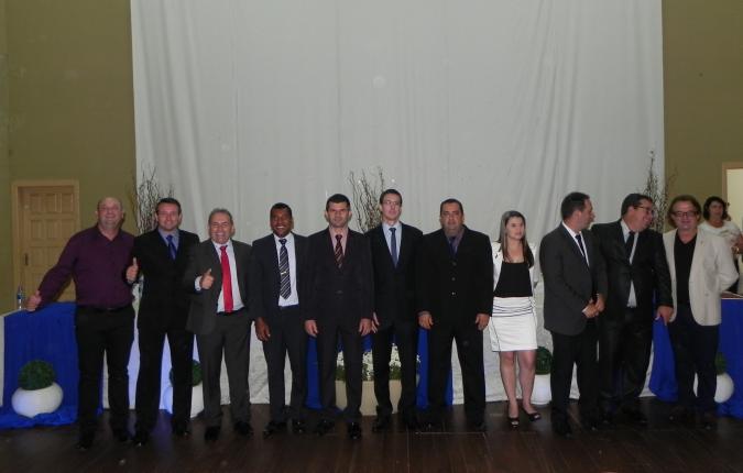 Como prevê o regimento interno, a sessão solene foi presidida pelo vereador mais velho, sendo assim, designado para coordenar os trabalhos o vereador Leônides Moser. Inicialmente foram empossados os nove vereadores eleitos, em seguida foi dado uma pausa de cinco minutos para a formação das chapas para a eleição da nova mesa diretora, sendo que foram apresentadas duas chapas: