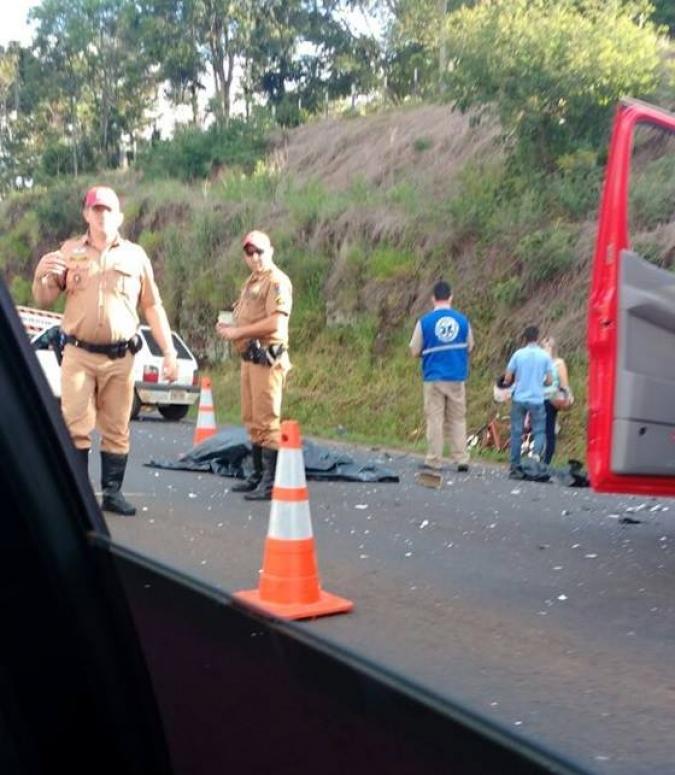 O acidente aconteceu por volta das 18 horas e envolveu uma motocicleta Yamaha YBR com placas de Francisco Beltrão, conduzida por Marcos Luiz Rodrigues Brizola, 25 anos e um caminhão Mercedes-Benz com placas de São Mateus do Sul, conduzido por Djanir Castro Vacosni.