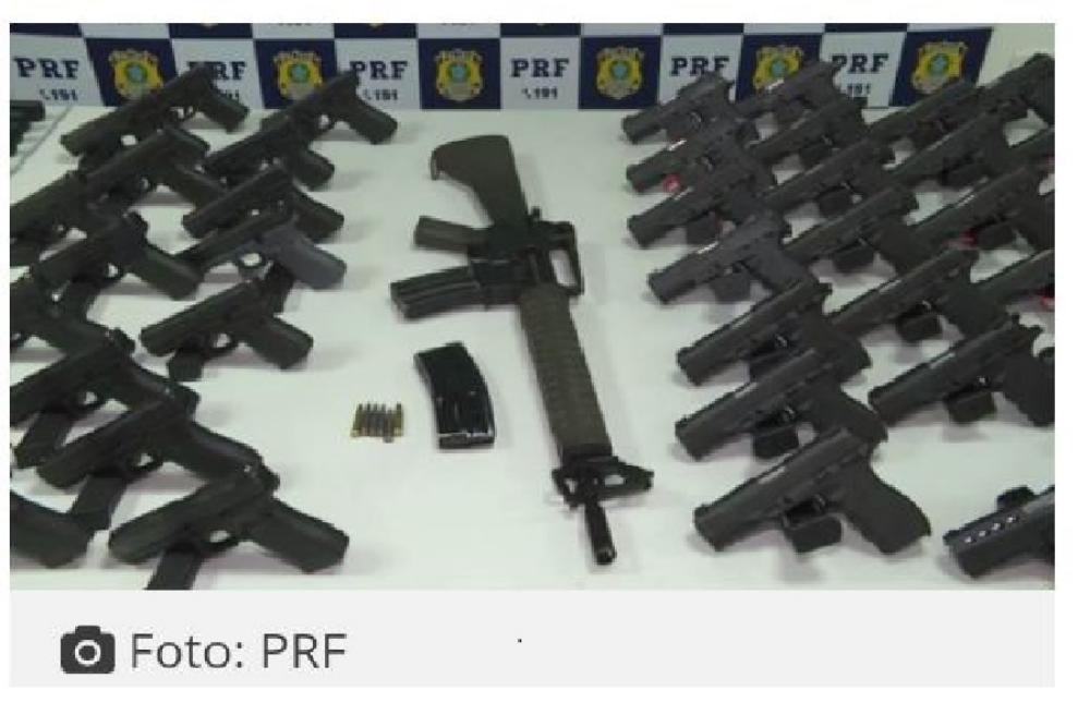 Um carregamento com dezenas de pistolas, carregadores e um fuzil foi apreendido pela Polícia Rodoviária Federal (PRF), em uma abordagem na rodovia Presidente Dutra (BR-116), em São João de Meriti, na Baixada Fluminense. O armamento de origem estrangeira estava escondido num fundo falso de um carro. Um homem foi preso suspeito de tráfico de armas. O flagrante aconteceu na tarde de domingo (5).