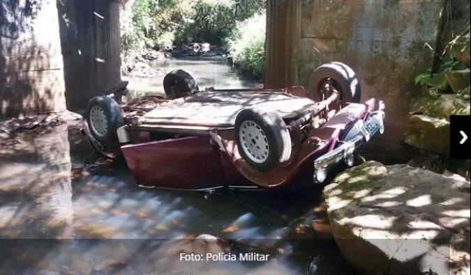 Duas pessoas morreram após um veículo Fusca cair de uma ponte no Rio Santa Rita, bairro Jardim Bandeira 2, próximo ao antigo viveiro municipal em Marmeleiro.