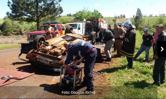Duas pessoas ficaram feridas após o veículo que elas estavam capotar na rodovia PR-880, por volta das 12 horas desta quinta-feira (01), em Realeza.
