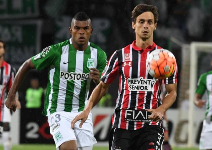 Diante de aproximadamente 45 mil torcedores, que pintaram o estádio de verde e branco, o Tricolor até saiu na frente com gol de cabeça de Jonathan Calleri, aos oito minutos do primeiro tempo – o argentino chegou à artilharia isolada da competição, com nove tentos. No entanto, os colombianos, donos da melhor campanha do torneio, trataram de frear o ímpeto são-paulino pouco depois, quando Miguel Borja, carrasco do jogo de ida, arrancou em velocidade para deixar tudo igual.