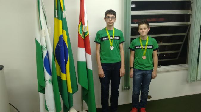 Na última terça feira, dia 05, durante a 21ª sessão ordinária da Câmara de Vereadores de Chopinzinho, foi feito a entrega de uma moção de aplausos a dois alunos do Colégio Estadual do Campo Cely Tereza Grezzana, da comunidade de São Francisco, os quais foram destaques na 11ª Olimpíada Brasileira de matemática. Anderson Kogler conquistou a medalha de prata e Eduardo Ferrarini conseguiu a medalha de bronze. A homenagem foi assinada pelos nove vereadores.