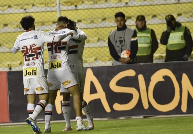 O São Paulo sofreu na altitude de La Paz, mas avançou às oitavas de final graças a um gol do argentino Jonathan Calleri. O goleiro Denis falhou novamente e foi expulso de campo, mas o artilheiro tricolor aproveitou a única chance que teve no jogo dessa quinta-feira para decretar o empate por 1 a 1 com o Strongest, no estádio Hernando Siles. A igualdade era tudo que a equipe de Edgardo Bauza precisava para seguir adiante no torneio, mas mantém o time sem vencer fora de casa em 2016. O rival no mata-mata será o mexicano Toluca, que se classificou em primeiro no Grupo 6.
