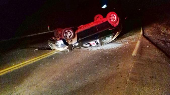 Um veículo Gol, placas de Pato Branco capotou por volta das 4h50 desta quinta-feira (21), no m 517 da rodovia BR-158, saída de Pato Branco para Coronel Vivida.