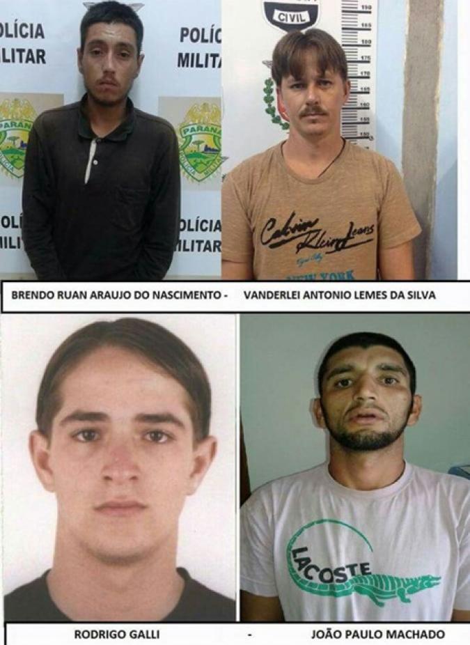 O carcereiro foi dominado pelos presos, algemado, e trancado em uma cela. Fugiram os detentos Vanderlei Antônio Lemes da Silva, vulgo “Alemão”, 30 anos, Brendo Ruan Araújo do Nascimento, vulgo “Cabelo” 21 anos, Rodrigo galli, 25 anos e João Paulo Machado, 31 anos.