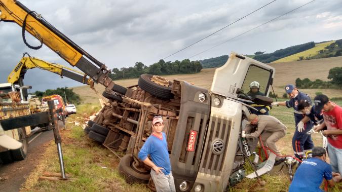Um caminhão placas AYB-9352 de Guaraniaçu, carregado com lâminas, dirigido por Jesse Muller, 30 anos, seguia sentido Chopinzinho à Coronel Vivida, quando em uma curva próximo do local onde está sendo construída a unidade da Agrogen, o motorista perdeu o controle da direção, saiu da pista onde o caminhão caiu em uma vala e tombou.