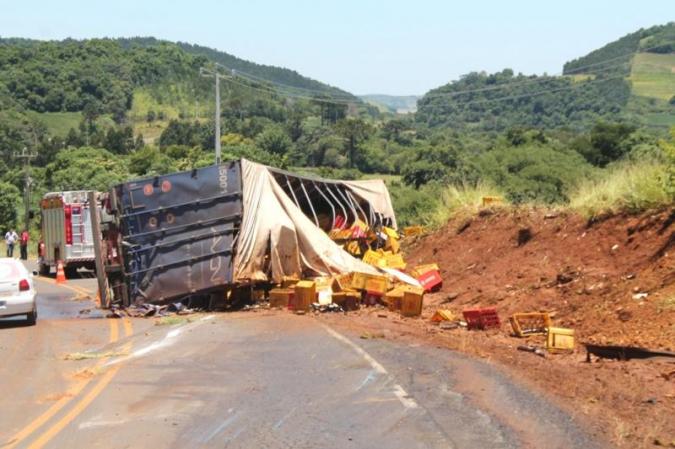De acordo com o Soldado Douglas do Corpo de Bombeiros, o motorista teria dito que na descida da Serra, faltou freio e ele acabou perdendo o controle do caminhão, vindo a capotar.