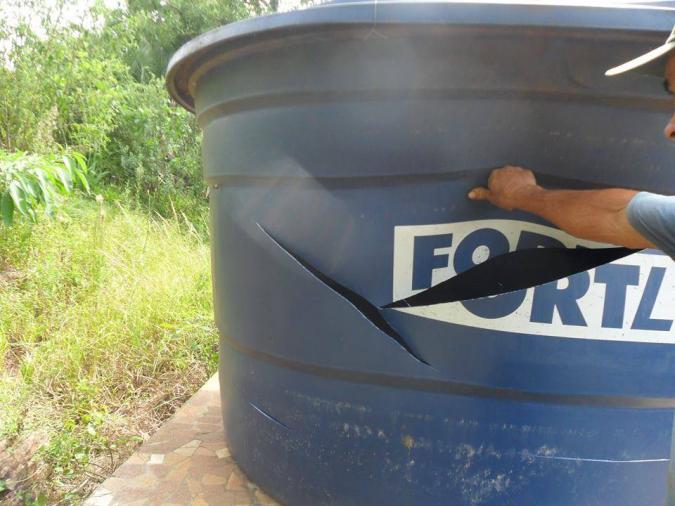 De acordo com seu Vilson Dalla Costa, foram 10 cortes grandes em uma caixa de água de três mil litros que serve para abastecer o pulverizador, aparentemente de facão, além de destruírem toda a parte de conexão, bóia e encanamento que ficou totalmente destruídos.