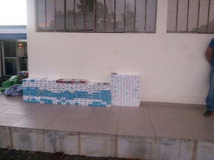 No local, estavam um casal e uma criança de 4 meses de idade, sendo que a mulher relatou ser a casa de sua mãe e seu padrasto, porém que ambos estariam em viagem, e ela teria ficado como responsável pelo local. Ao indagar a moradora sobre a situação, a mesma relatou que teria mais cigarros no local e que ela teria efetuado a venda do "maço" de cigarros marca Fox ao abordado. Após a autorização para a busca domiciliar, foram realizadas buscas na residência onde em um cômodo próximo ao quarto do casal foram encontrados aproximadamente 4 caixas de cigarros das marcas Fox, Mil, Classic e Pine. Foi vistoriado, ainda, dentro do pátio, um veículo Ford DEL REY placas de São João-PR, onde em revista foi encontrado embaixo do banco de trás presos as molas, tanto no assento como no encosto, cerca de uma caixa de cigarros das mesmas marcas já citadas.