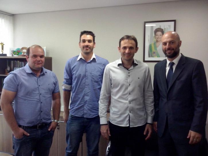Além do gerente da TIM Cleber Affanio e do prefeito Gelson Costa, também participaram da reunião o secretário da Indústria e Comércio Sérgio Wegner e o assessor de Meio Ambiente Nilmar Pussinini.