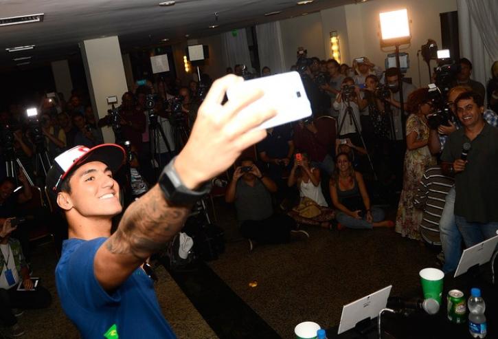 Gabriel Medina voltou ao Brasil campeão e um ano mais velho. Primeiro brasileiro a erguer o troféu do Mundial de Surfe, o fenômeno de Maresias desembarcou em São Paulo nesta terça-feira com 21 anos e como ídolo. Cercado por uma multidão, o paulista exibiu um largo sorriso e teve dificuldades para deixar o Aeroporto Internacional. Em Guarulhos, Medina recebeu a imprensa brasileira e não desgrudou da irmã Sofia, seu xodó, além da mãe Simone e do padrasto Charles. Ciente de seu novo status, ele falou sobre o sonho de ultrapassar Kelly Slater, de Mick Fanning, da ansiedade que viveu nos dias em que as baterias do Pipe Masters foram adiadas no Havaí, do assédio das "Medinetes" e por mais de uma vez comentou sobre a idolatria e comparações com Ayrton Senna.
