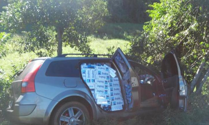Tratava-se de um veiculo Renalt/MeganeGran Turismo de Placas APQ-3121 da cidade de Curitiba, completamente carregado de cigarros.