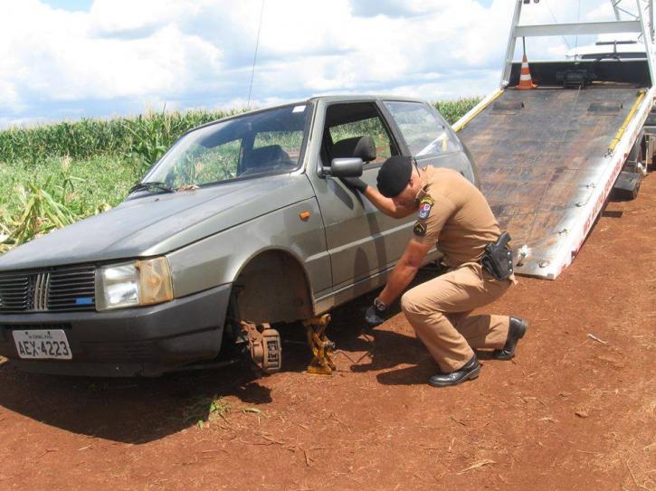 Na tarde desta segunda feira, a polícia Militar de Chopinzinho foi informada que havia um veículo Fiat Uno que estava abandonado no meio de uma lavoura de milho entre os municípios de Chopinzinho e Saudade do Iguaçu. Ao verificar a denúncia os policiais constataram que o veículo havia sido furtado durante a noite anterior em Coronel Vivida. O carro estava praticamente depenado.