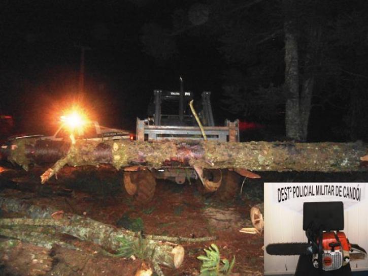 De acordo com a polícia o senhor Jocimar Locatelli, 50 anos, conhecido por "Guaraná", qual estava cortando árvores nativas, tipo “pinheiro” com um motosserra e usando um trator para carregar as torras em um caminhão.