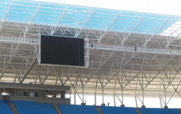 O processo de montagem dos módulos começou há cerca de uma semana foi concluído nesta terça-feira. O "modus operandi" exigiu, inclusive, a construção de uma plataforma provisória de madeira nas arquibancadas para o içamento das 15 placas que compõem cada estrutura. A intenção é testar a imagem até quarta-feira. O aparelho só voltará a ser ligado novamente apenas no próximo dia 20.