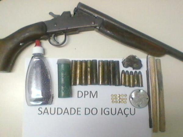 Quando retornavam para Saudade do Iguaçu, os policiais foram novamente até a residência do acusado, onde em mais uma busca realizada na casa, encontraram escondida em uma dispensa nos fundos da casa, uma espingarda calibre 36, marca boito de numeração 218676, com quatro cartuchos intactos e outros 05 deflagrados. Também foram encontrados cinco munições de revólver calibre 38 e vários apetrechos para recarga de cartuchos. A arma juntamente com as munições também foi entregue na delegacia de Chopinzinho.