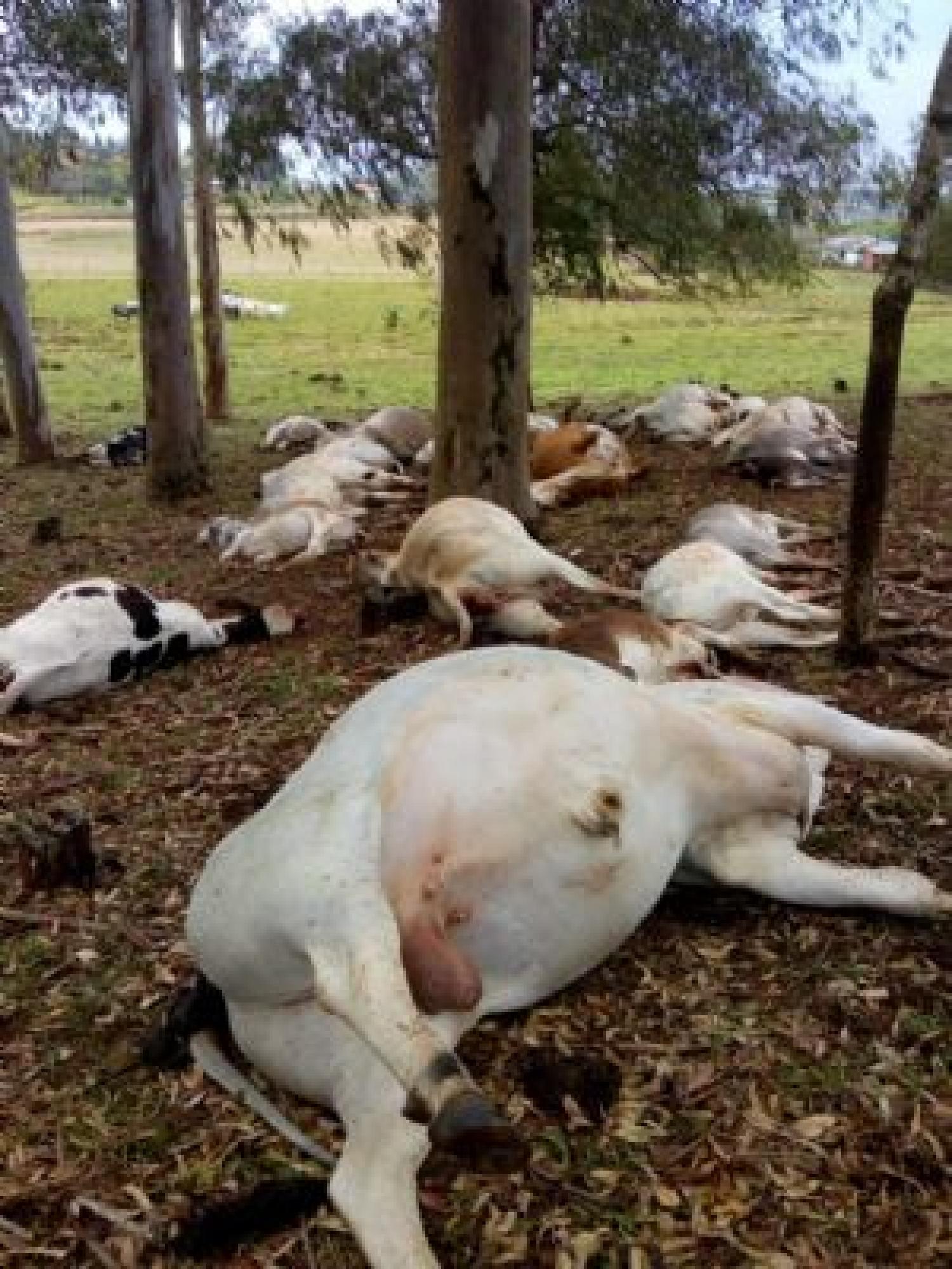 Durante o temporal da noite desta quarta-feira, dia 02, um raio matou 27 cabeças de gado de corte sendo a maioria vacas.
