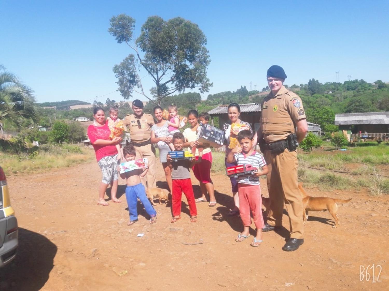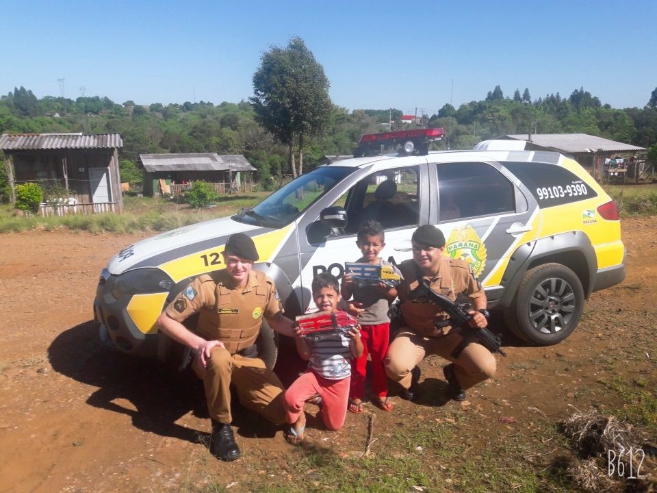 Esta ação contou com a colaboração da loja MM, bem como de doações de policiais destacados neste Pelotão! A PM agradece os colaboradores em geral e também os pais que colaboraram para esta aproximação.