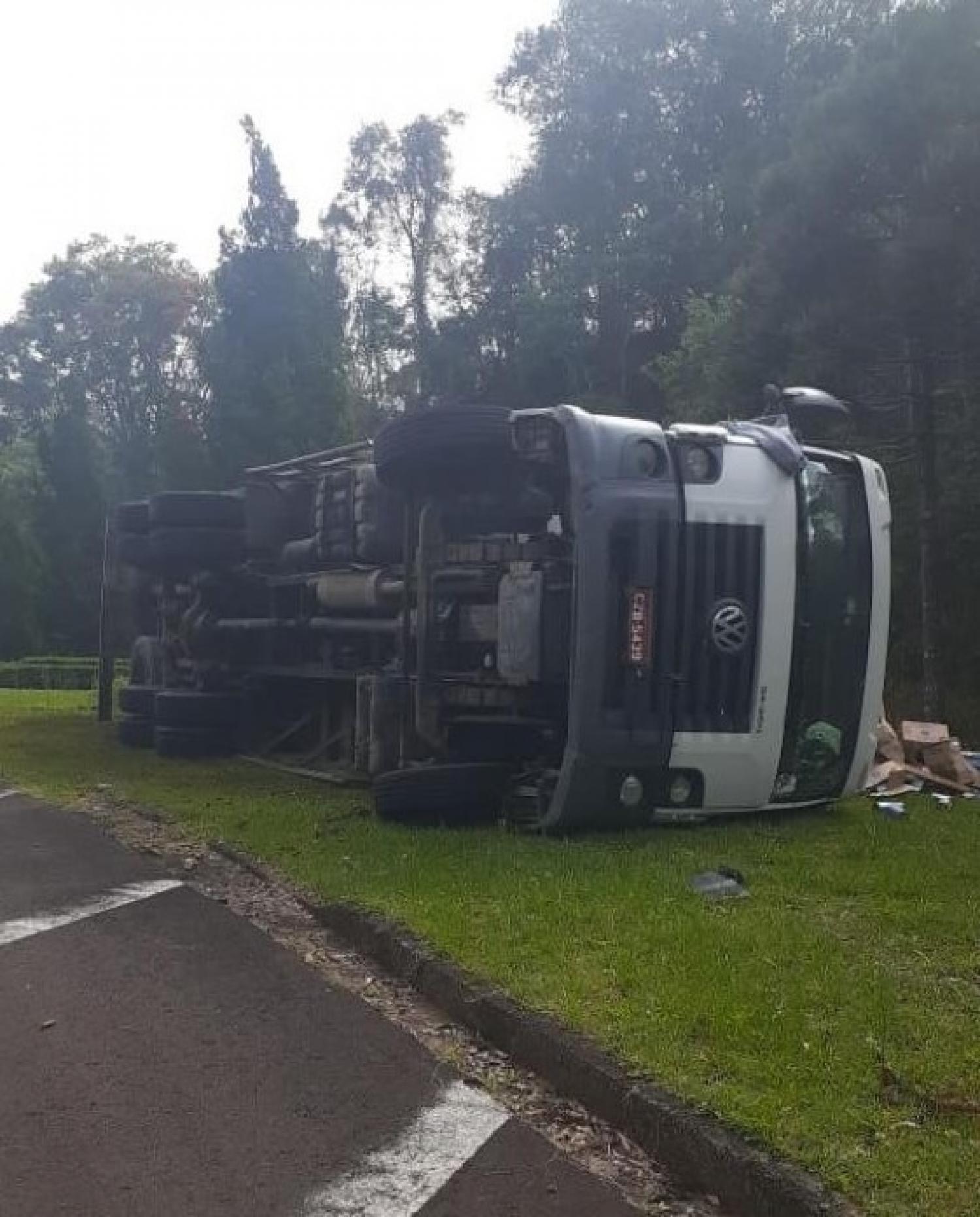 Um caminhão carregado com solvente para tintas tombou na tarde desta terça-feira (15), próximo a pedreira do Rio Jordão, entre Foz do Jordão e a Vila Copel, na região centro oeste paranaense.