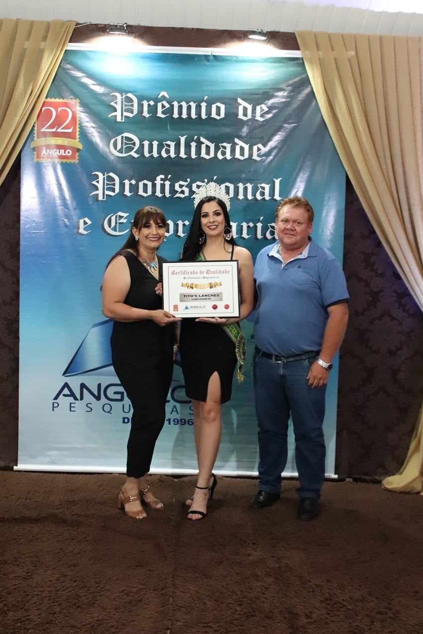 No último sábado, dia 30, em um jantar festivo na Associação Atlética Banco do Brasil, AABB, o Instituto Ângulo de Pesquisas, realizou a entrega dos troféus e certificados às empresas e personalidades que conquistaram o prêmio de “Qualidade profissional e Empresarial do ano de 2019 em Chopinzinho”.