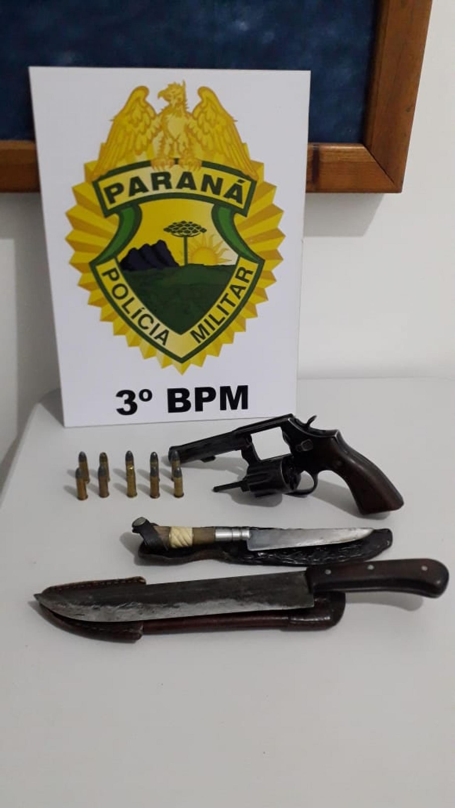 Por volta das 19:45 do último sábado, dia 07 , a Polícia Militar de Honório Serpa realizava patrulhamento pelo interior do município, nas proximidades da Comunidade Nova Terra, onde estaria ocorrendo um Rodeio, à equipe realizou abordagem a diversos veículos, sendo um deles um GM/PRISMA MAXX, cor prata, de Palmas/PR, conduzido por um homem e tendo como passageiros mais um homem e duas mulheres, sendo que em busca pessoal foi localizado na cintura do condutor, dentro de uma bainha de couro uma faca com cabo de madeira com aproximadamente 23 cm de lamina.