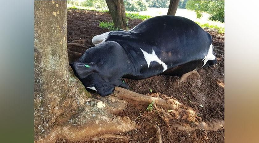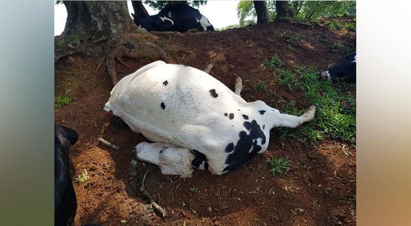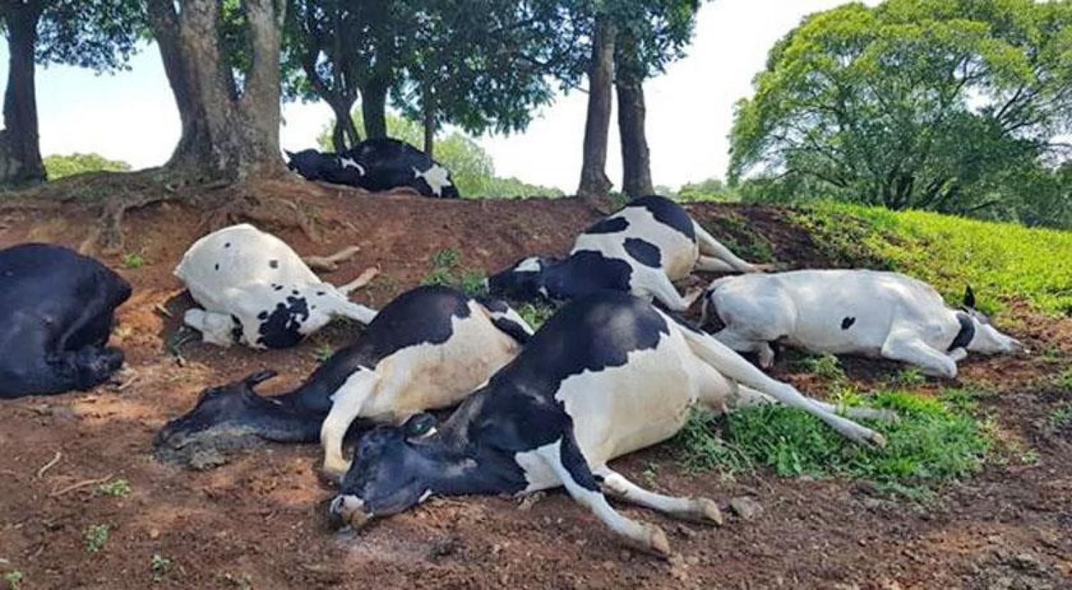 Sete animais foram mortos após a queda de um raio durante o temporal ocorrido na madrugada de hoje (30), na comunidade de Linha Separação, Interior de Dionísio Cerqueira.