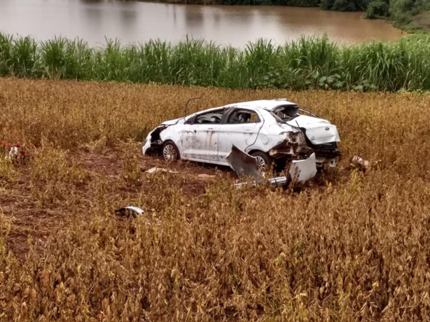 Um veículo Ford/Ka com duas pessoas capotou na rodovia BR-163 entre Pérola do Oeste e Pranchita no início da tarde deste domingo (02).