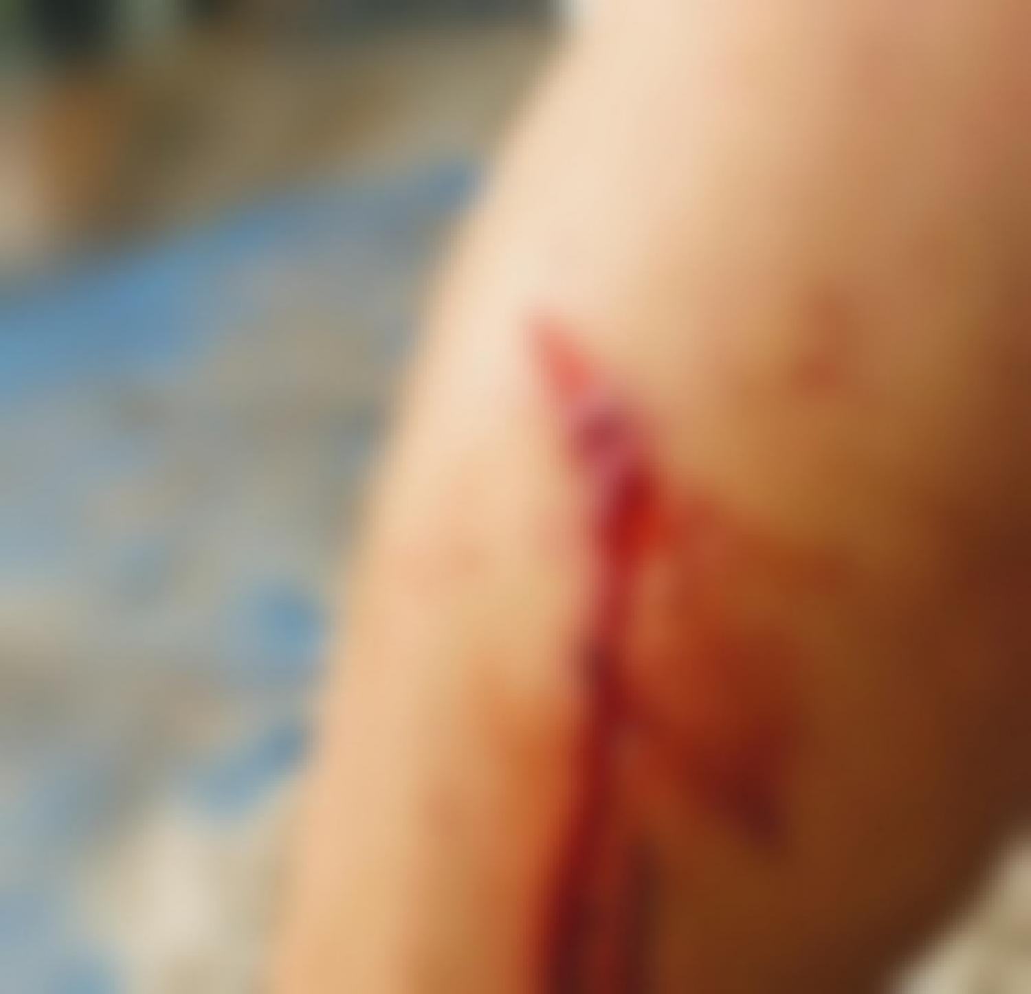 Um vidro quebrado foi colocado inadequadamente e ao jogar a sacola no caminhão, o vidro enroscou em sua perna causando o ferimento.